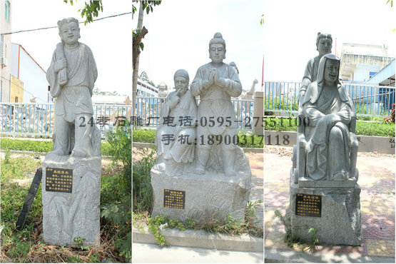 《二十四孝》的編者是元代福建延平府尤溪縣的郭居敬。他曾選輯虞舜以下二十四位孝子的感人故事,為每個故事配上一首詩,用來做兒童的啟蒙讀物,《二十四孝》的名稱便是由此而來。《二十四孝》故事編定成書之后,古人把孝道列為社會教化的一項重要內(nèi)容,鼓勵人們“老吾老以及人之老,幼吾幼以及人之幼”,已經(jīng)在我國流傳數(shù)百年,幾乎達到了家喻戶曉的程度,對國人的倫理道德產(chǎn)生了不可低估的影響。九龍星園林古建加工的二十四孝石雕像栩栩如生,將中國古代的孝賢及其事跡呈現(xiàn)出來,就是為了讓孝道文化這一傳統(tǒng)文化在新時代得以發(fā)揚光大,進一步弘揚和傳承中華民族尊老、敬老、愛
