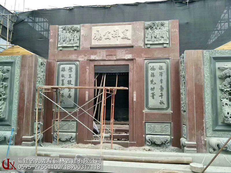 寺廟墻面浮雕壁畫安裝現場 九龍星園林古建