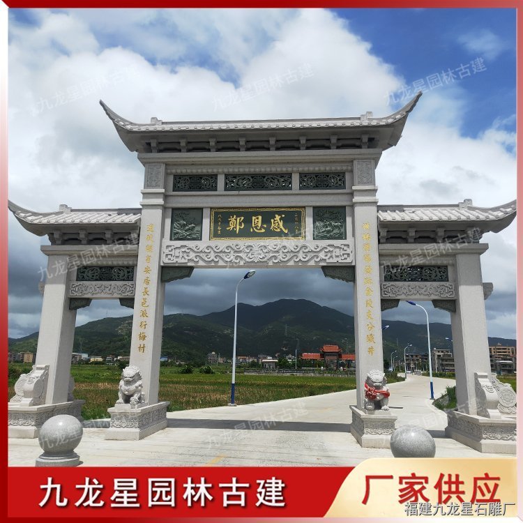 農(nóng)村石雕牌坊常見是用青石、花崗巖制作加工,經(jīng)過石雕牌坊訂制公司精心雕刻而成。石牌坊多樣的外觀形態(tài),豐富的文化內(nèi)涵,使得村石石雕牌坊成為新農(nóng)村建設的標志性建筑。