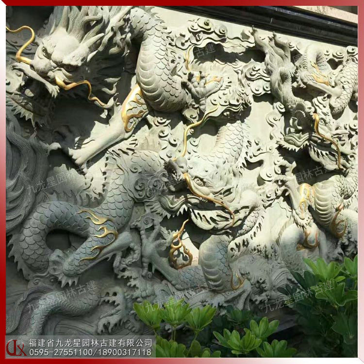 九龍壁乃中國特有之建筑,由須彌座、壁身和廡殿頂三部分組成。有一龍壁、三龍壁、五龍壁、七龍壁、九龍壁諸形式,而以九龍壁最為珍貴。龍壁通常建于帝、后、王公居住的宮殿、王府等建筑的正門對面。