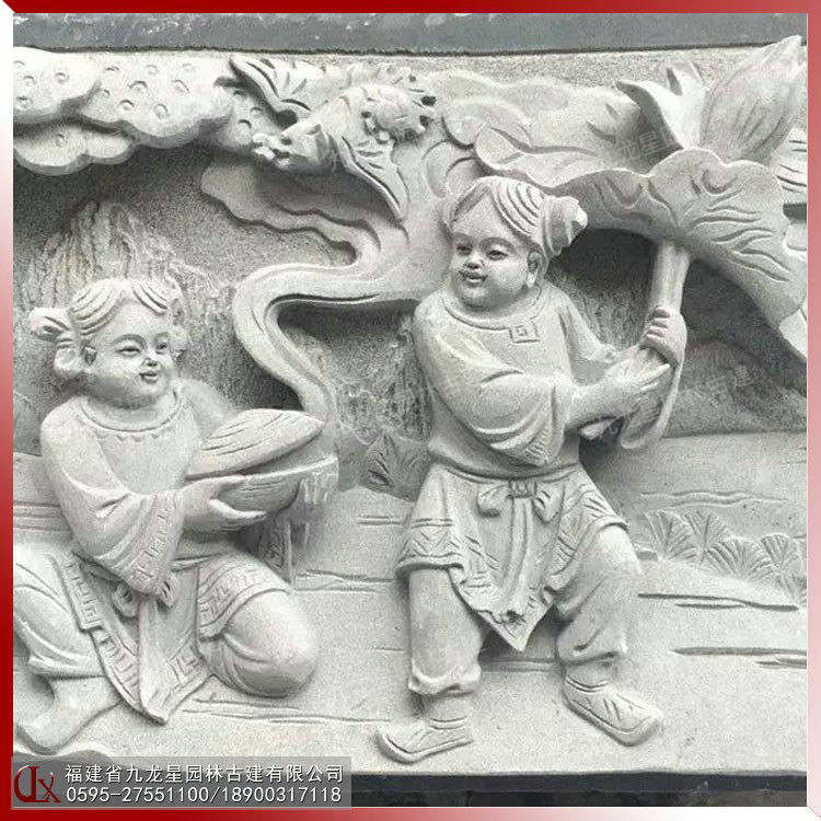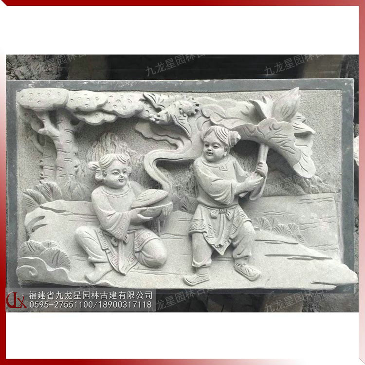 人物浮雕 和合二仙圖 石雕和合二仙童子浮雕